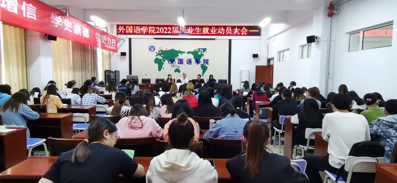 首先杨书记讲话,分析了当前就业形势,指出当前英语专业就业形势严峻,建议毕业生要树立正确的就业观念,“找工作容易,找一份适合自己的工作不容易”,“建议大家先就业,再择业”,鼓励大家要想清楚自己的未来,结合自身能力与发展方向,找到合适工作。尽早就业就可以尽早为国家、社会、企业做贡献,也能尽早减轻家庭和个人负担。在面对竞争压力时,毕业生要表现自己的优势。以往届优秀毕业生为例,鼓励大家无论考研与否,都能有一个美好的未来,只要付出足够的努力就会有所收获。同时,杨书记指出英语专业毕业生适应能力较强,可以从事于本专业无关的其他工作,例如市场营销或综合管理,同样也可以有美好的前程。会议中,杨书记强调了中英简历的重要性以及文字材料在找工作的过程中起到的关键作用,希望员工抱有积极态度,主动推销自己。最后,杨书记要求毕业生正确处理就业和学业之间的关系,合理分配时间,安排就业相关活动。