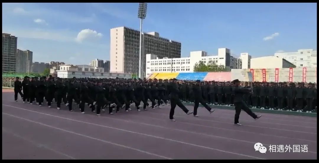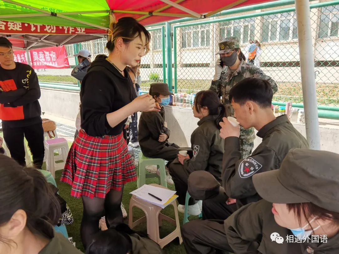 首长的亲切问候同学们铿锵有力的回答着,展现出了大一新生积极阳光的一面。