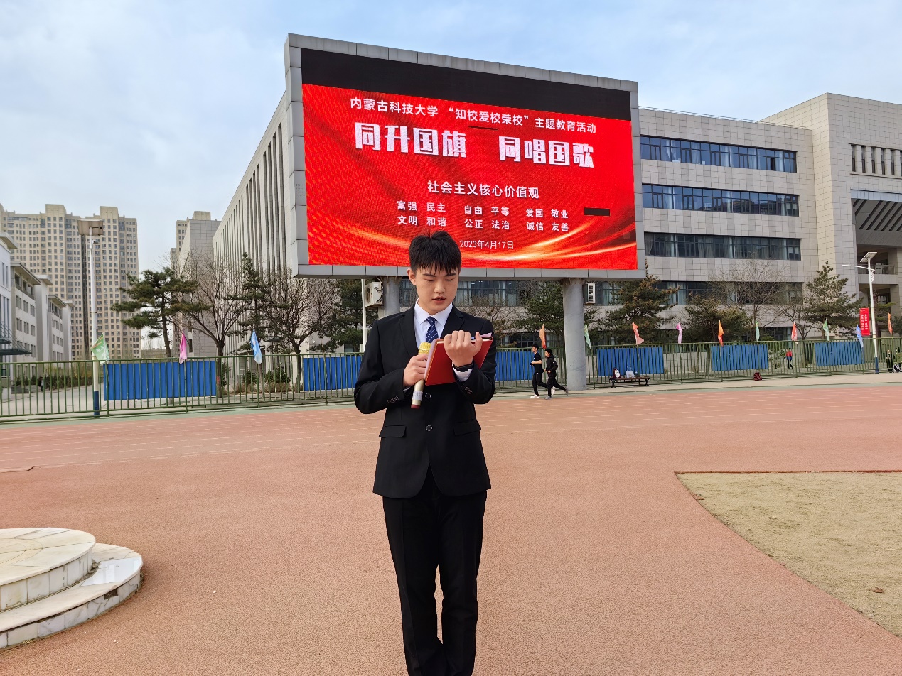升旗仪式结束后,永利集团3044am20级英语专业的袁帅同学进行了以“将青春融入时代洪流”为主题的国旗下演讲。