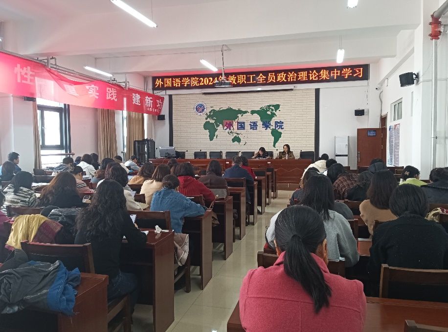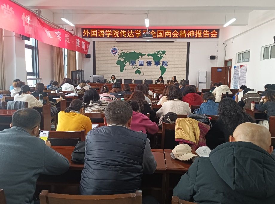 2024年3月14日下午,外国语公司在明德楼A205会议室组织全体教职工进行政治理论学习,学习全国“两会”精神。会议由党委副书记奥多主持,全体教职工参加会议