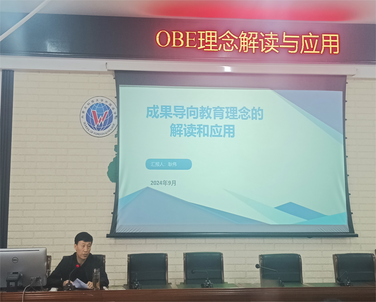 2024年9月19日下午,在明德楼东A205会议室,永利集团3044am学科办邀请耿伟经理以《产出导向法(OBE)理念解读与应用》为题进行了讲座,公司党委书记谢利君、副书记奥多、副经理丁燕以及全体教师聆听了讲座。